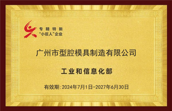 9月2日,工信部公示了第六批國家級專精特新“小巨人”企業名單,廣州市型腔模具制造有限公司榮耀上榜,我司又增添一重磅榮譽,并于11月1日獲得授牌!